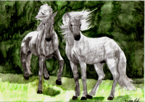 <-- das sind 2 Camargue-Pferde, in Aquarell